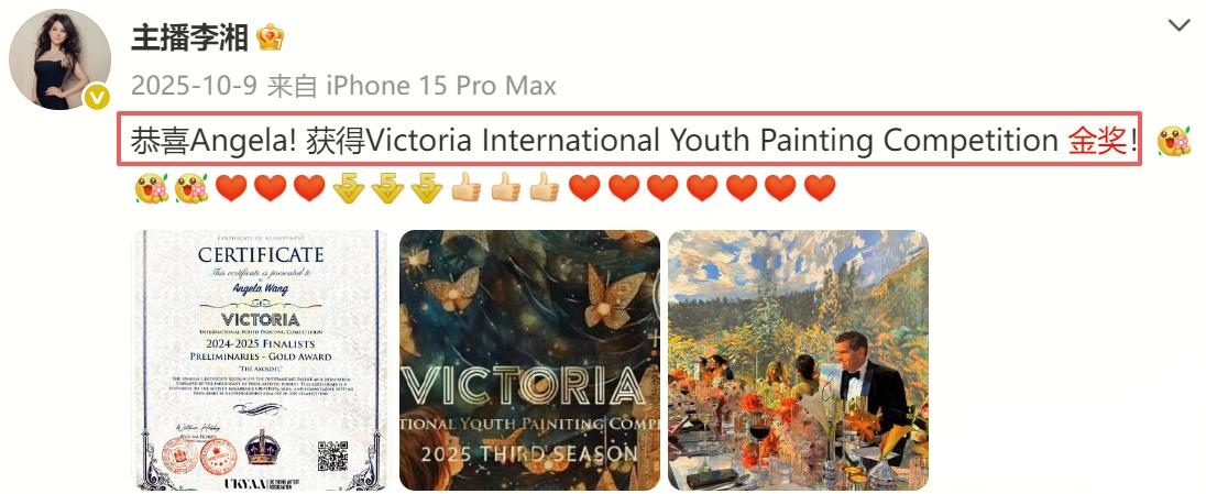 虽然李湘曾在社交平台上晒出过,王诗龄在国外某绘画比赛中斩获金奖的喜讯。