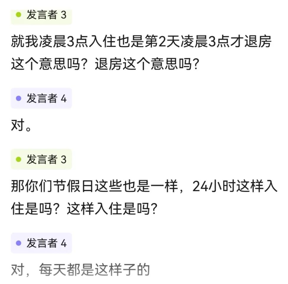 这套逻辑下,“入住时间”是可以商量的——早到只要有房,让你进;“退房时间”是不可以商量的——晚走必须加钱。