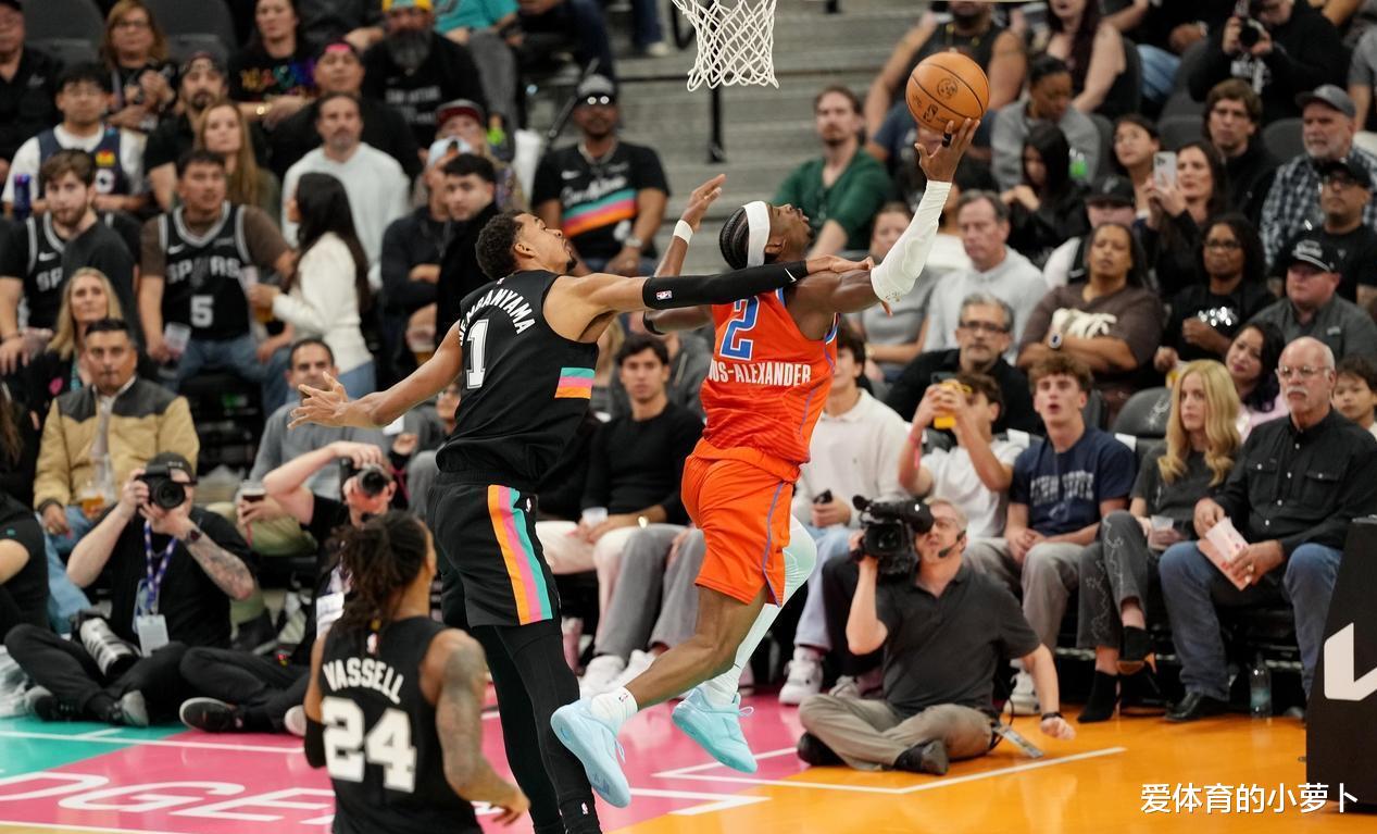 这场比赛,清晰地暴露了几个残酷的现实。第一,关于裁判的尺度。本场比赛,马刺获得了22次罚球,而雷霆只有7次。作为对比,亚历山大场均能获得9.7次罚球,但本场只有5次。