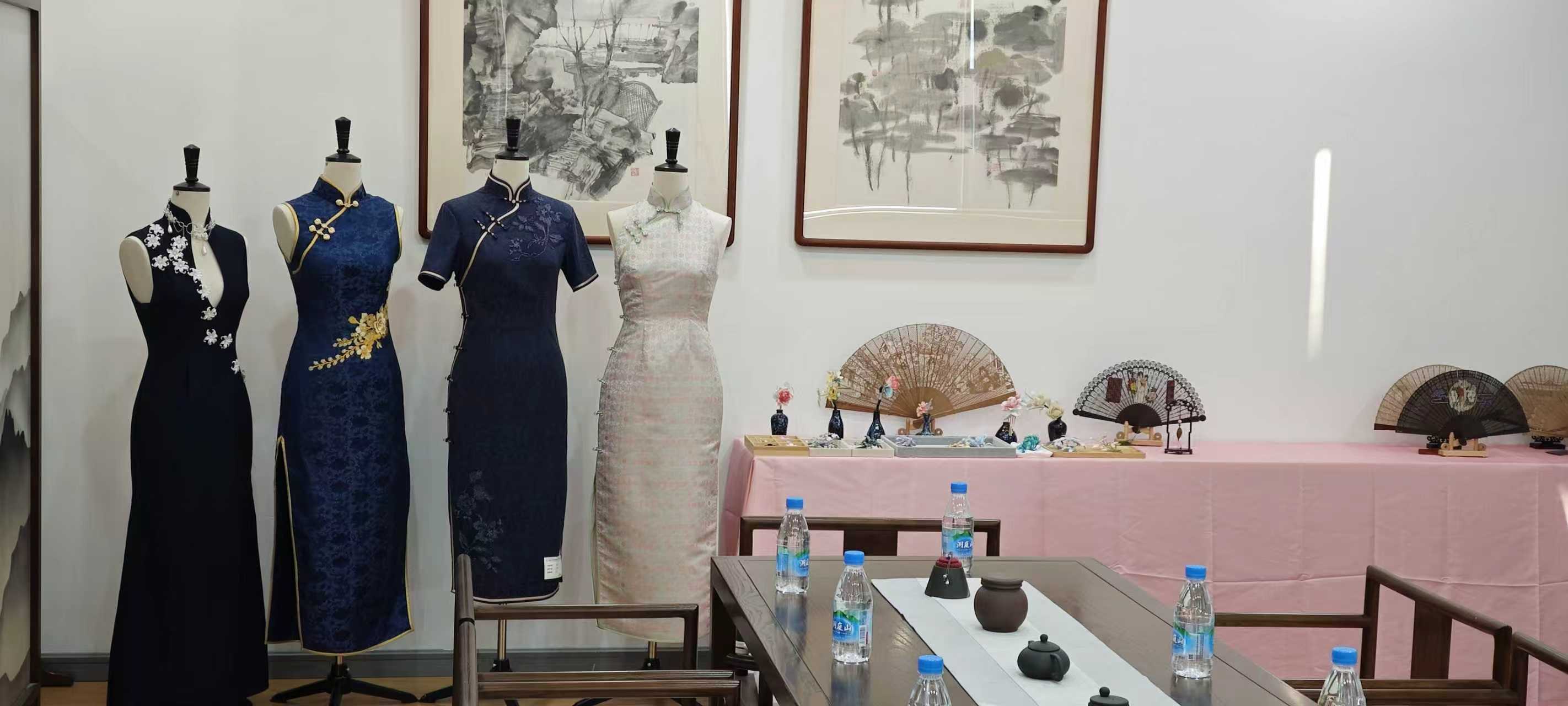 步入活动现场,雅致的氛围与琳琅的作品即刻攫住目光。文旅院的老师们笑意盈盈,为到访嘉宾细细讲解每一件作品背后的巧思与匠心。旅游工艺品研发中心的非遗力作堪称惊艳:苏扇轻摇藏风雅,核雕方寸纳乾坤,宋锦织就千年韵,苏派旗袍与盘扣更是将江南的婉约揉进一针一线,造型别致、设计新颖,精湛的技艺引得赞叹声此起彼伏。