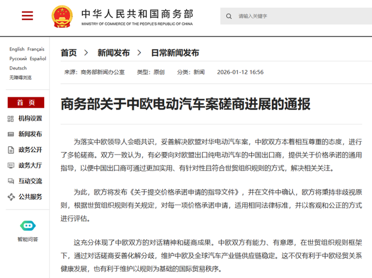 首先海外市场的定价逻辑就与国内截然不同,价格战的空间也几乎不存在。2026年1月12日,中国商务部与欧盟委员会达成重要共识,双方决定采用“价格承诺”机制以避免此前高达35.3%的加征关税,中国出口企业需按照欧盟设定的最低价格或以上水平销售纯电动汽车。这意味着中国电动车在欧洲不仅没有打价格战的空间,反而需要主动提高定价以符合规则。