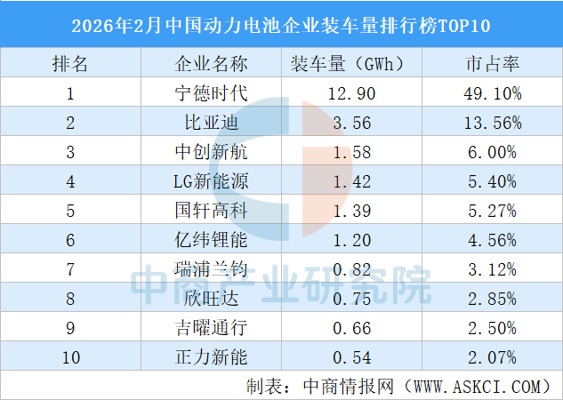 在最核心的三电领域,中国已经经形成了强大的产业集群优势。据中商产业研究院数据,2026年2月,国内动力电池装车前三企业市占率约68.7%,前十企业达94.4%;其中宁德时代以49.1%份额稳居第一,比亚迪、中创新航紧随其后。
