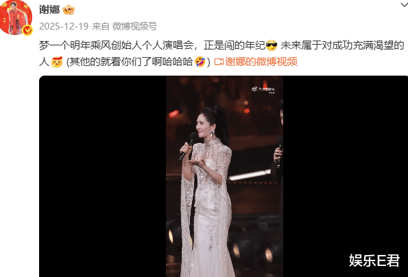 事实上,谢娜“蓄谋”开演唱会早已有迹可循。早在2025年12月19日,谢娜便以“乘风创始人”的身份在社交平台发文,写下“梦一个明年个人演唱会”的心愿,更配文激励自己“正是闯的年纪”。才短短一个多月,谢娜的梦想,就即将照进现实。