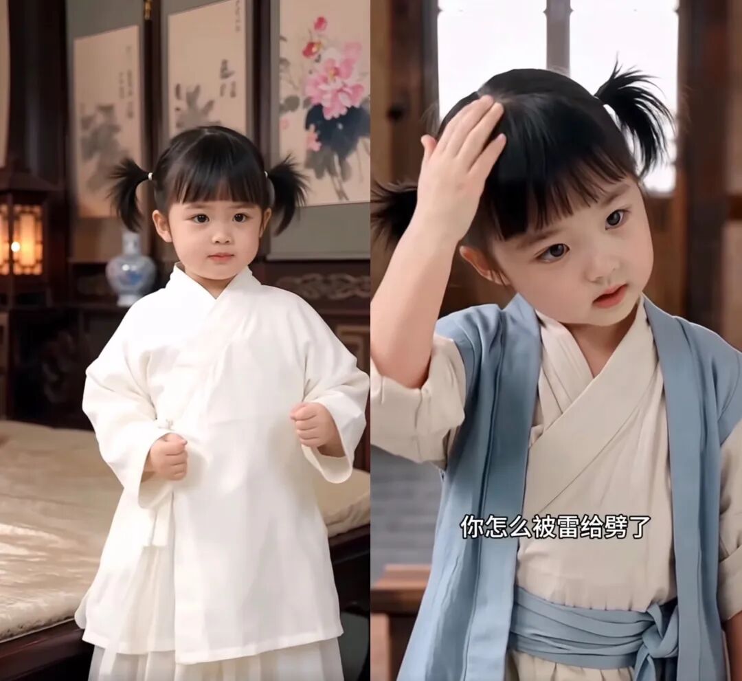 2025年5月底,她开始在抖音连载《奶团太后三岁半》,讲述一个自带读心术的娃娃太后帮助皇帝肃清后宫与朝堂的故事,全流程AI制作。