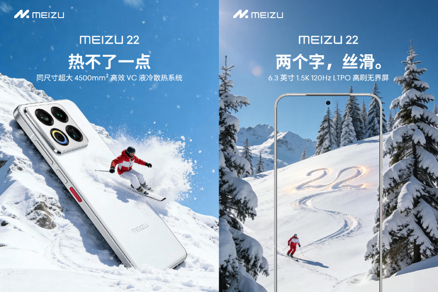 另外,日前,@魅族科技 也再次发布了魅族22的两张亮点预热海报,并配文称,“热不了一点。魅族22配备同尺寸超大的4500mm²VC散热系统,有效加强了温控效果,充分榨干芯片的性能表现,让你每个操作都冷静从容。”“两个字,丝滑。魅族22配备6.3英寸1.5K 120Hz LTPO高刷无界屏,这一次我们将亮度、色彩、流畅度全面加强,一块毫不妥协的旗舰屏,就该一眼惊艳、一用丝滑。”