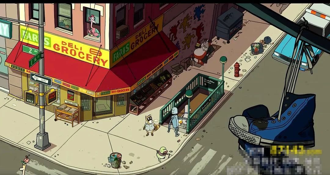 值得注意的一个细节,机器人和浣熊,其实在最初的地铁站外就相遇过了,而且还有一段小小的对视,这也许是某种宿命论,让人感慨
