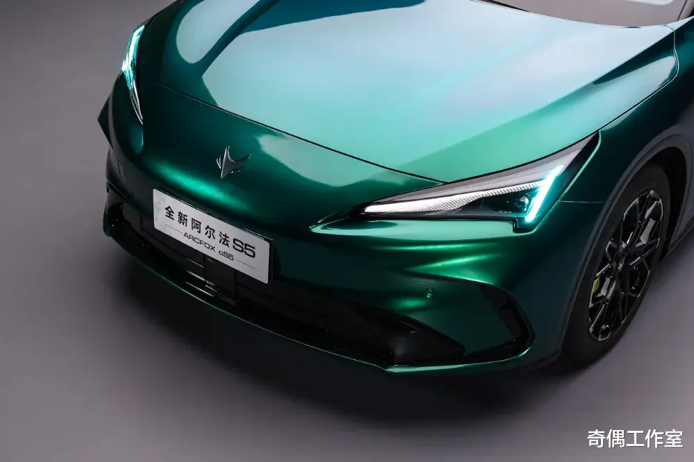 全系标配城区NOA是最大卖点。搭载北汽元境智能辅助驾驶系统,采用大疆卓驭惯导双目立体视觉方案,无需高精地图即可实现城区领航、高速NOA、跨楼层记忆泊车等功能。2、AI高性能宽体轿跑有颜有料年轻人的第一台轿跑选车如选对象,第一眼感觉至关重要。阿尔法S5深谙此道,用一套“风塑美学”设计,把自己打造成了行走的吸睛神器。大家选车,十分注重颜值带来的个性表达,全新阿尔法S5秉承“风塑美学”设计理念,打造自带回头率的吸睛颜值。在“风塑美学”设计的运动轿跑外形下(风阻系数0.1925Cd),依然保证了实用的内部空间和越级舒适配置。全新阿尔法S5在星云粉、冰灰、极狐白、星钻黑的基础上,新增幻影绿、瓦纳蓝、熔岩灰三种外观色,7种潮流配色,款款皆经典。与陈妍希同框、全网刷屏的幻影绿车色,采用行业领先的PWB纳米炫彩水性色漆,搭配超薄鳞片状金属效果颜料,可呈现出独特的液态金属流动质感,吸睛十足。据了解,该涂料为全球涂料巨头PPG专为高端车型开发。成本是普通金属漆的3倍以上,常见于30万以上车型,旨在提升视觉质感和个性表达。整体造型上,全新阿尔法S5车长增加66mm,车身尺寸为4886×1930×1480mm,轴距长达2900mm,低趴宽体轿跑姿态配合百万豪车级大溜背设计,既凸显运动张力,更实现0.1925Cd超低风阻。前脸更加紧致利落,搭配近400颗LED组成的极智源流日行灯和360°智驾小蓝灯,点亮瞬间化身美感与智慧双在线的“蓝眼狐”,回头率爆表。
