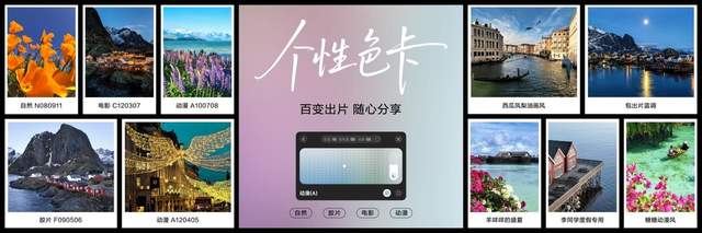 同时,“个性色卡”功能提供了自然、胶片、电影、动漫四种风格,支持拍前拍后随意调整,甚至可以DIY专属调色盘,分享给好友。而在拍摄过程中,“AI辅助构图”能自动识别场景并提供构图建议,让摄影小白也能轻松拍出构图严谨的大片。拍摄完成后,AI魔法移图、AI最佳表情、AI消除等修图功能,更是进一步降低了废片率,让影像创作变得简单而高效。