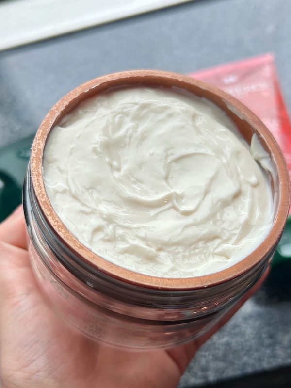 它的香型表现尚可,睡前抹一点在发尾,闻着能放松,不像别的发膜香得睡不着。昨天跟同事聚餐,她问我用的什么香水,说头发香得很贴人。缺点是吹头发的时候,热风会带走一点香味,技术上可能是香味颗粒怕热,不过吹到半干再抹,留香会好点,日常用完全够。