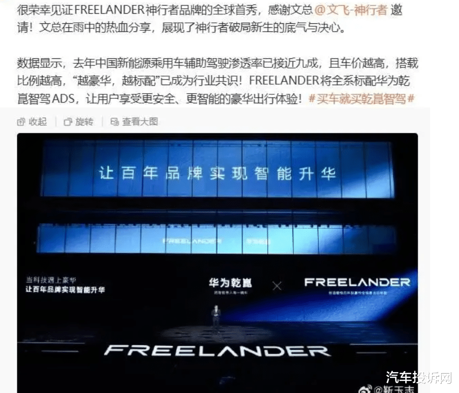 FREELANDER神行者已确认与华为乾崑达成合作,全系标配华为乾崑智驾ADS V4.1,旗下全地形SUV还将全球首搭896线激光雷达。