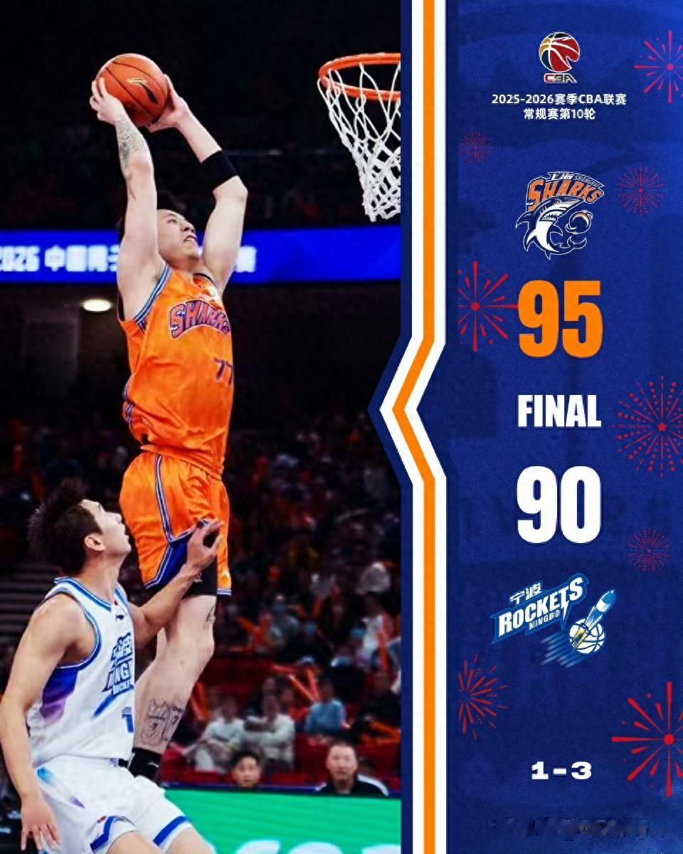 末节,王哲林连线古德温快攻上篮得手,刘礼嘉命中侧翼三分,张镇麟篮下打成2+1并双手暴扣得分,李弘权跳投命中,王哲林篮下打进。随后,我鲨进攻端陷入停滞,宁波町渥趁机打出一波12-0迫近分差,古德温上篮打进,王哲林命中两罚,张镇麟勾手投篮命中。节末,古德温封盖赵建树,李弘权造犯规罚球得分。全场比赛结束,上海主场95-90险胜宁波,取得六连胜。