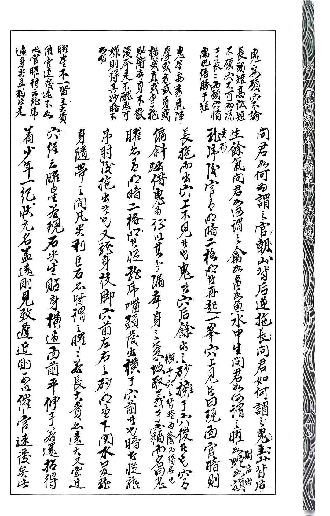 尤为珍贵的是,本书广泛辑录历代地理名家经典歌诀,堪称传统地理智慧的集大成之作。书中完整收录刘伯温《披肝露胆》、管辂《管氏指蒙》、陶侃《捉脉赋》、余芝孙《入式歌》、李淳风《地理小卷》、谢子敬《寸金赋》、王汲《心经语录》、吴景鸾《阴契阳符》、刘潜《达僧问答》等诸多名家典籍精华,将不同流派的地理智慧融会贯通。全书采用清写本形制,字迹工整、品相古朴,334页四册四卷完整无缺,图例绘制精细、与文字内容精准呼应,且对核心要点反复申明、解读透彻,充分体现“形家秘钞珍本”的稀缺价值。无论是形家地理从业者借助其精进实操技艺,还是古籍藏家收藏清写本珍稀典籍,亦或是研究者梳理历代地理流派的传承脉络,这部《地学形势摘要》都是不可多得的佳品,堪称承载传统形家地理千年智慧的珍贵载体。