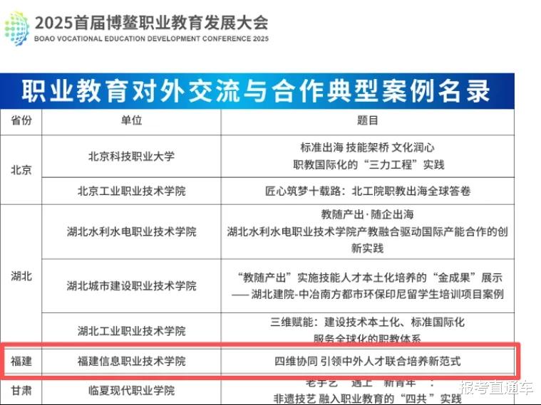 此次在博鳌职业教育发展大会上获得权威认可,既是对福建信息职业技术学院长期深耕对外交流合作成果的集中检验,也为学校下一阶段深化国际职教合作指明了方向。面向未来,学校将持续拓展职业教育国际化发展的新空间,积极参与更高层次、更宽领域的国际交流与合作,在服务区域经济发展和“一带一路”建设的同时,为中国职业教育走向世界贡献更多实践经验与创新样本。