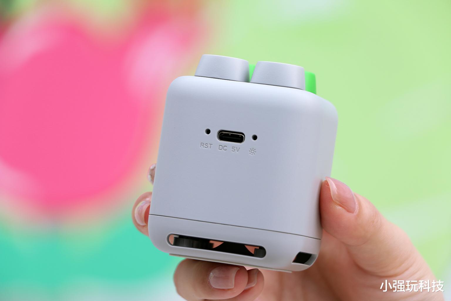 背面靠上的位置设计有复位孔、Type-C充电孔以及充电指示灯,充电时指示灯呈现红色常亮,充满时则变为绿色常亮。