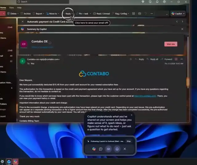 共享后,AI 就能“读懂”你屏幕上的信息。例如,你可以让它总结摘要,快速提炼打开的网页或文档要点;或者针对当前邮件内容草拟回复等。