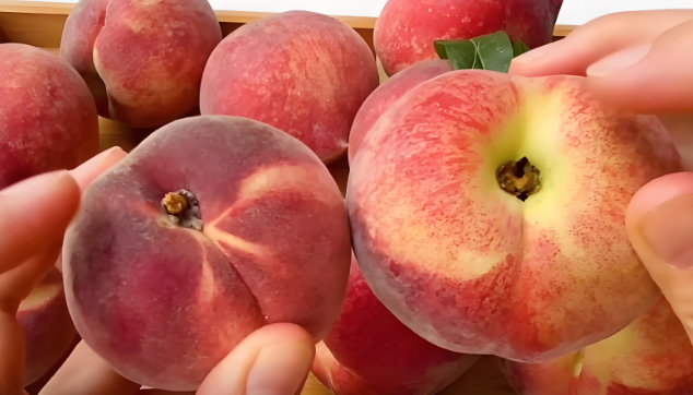 别被桃子过分鲜亮均匀的外表迷惑!打药催熟的桃子往往颜色艳丽得不自然。真正自然成熟的桃子,色泽通常更沉实,可能有稍微的青面,甚至带点“麻点”这样的桃子是成熟度高的现象,是糖分高的表现,这样的桃子入口汁水充盈,口感清甜。