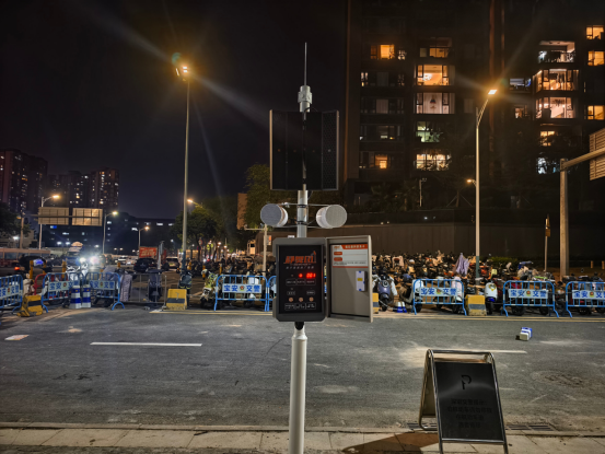 3)定音量:将声音聚集在设备正前方发声,活动声源处音量不超过85分贝,距声源最近的噪声敏感建筑一米处的音量不超过55分贝,从源头防控噪声。