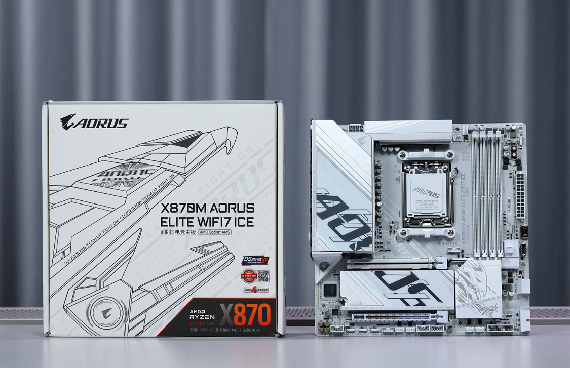 主板方面,看眼缘也看性价比,最终选中这款白色颜值主板,技嘉X870M AORUS ELITE WIFI7 ICE主板。