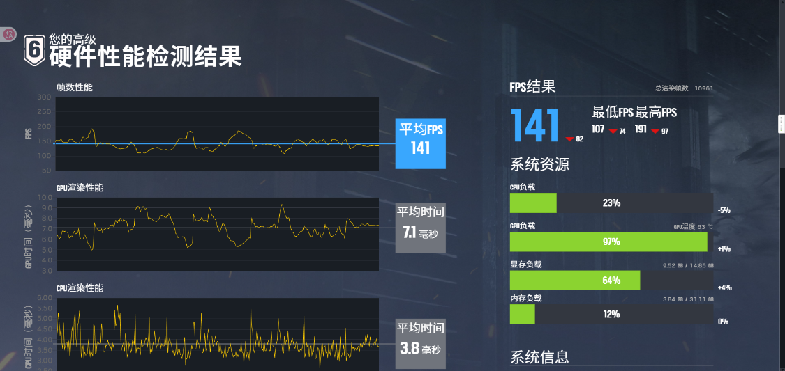 《彩虹六号》基准测试,超高画质,100%渲染比例,4K分辨率,游戏平均帧率为141FPS,开启超高性能DLSS后,游戏平均帧率为372 FPS,将DLSS设为质量后,游戏平均帧率为223 FPS;