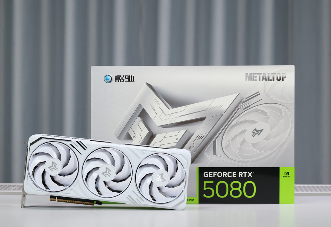 影驰RTX5080 金属大师白金版OC显卡,显卡含挡板三围:316.5*135.1*56mm,不含挡板三围305*120*56mm。散热外壳延续上代一体压铸成型工艺,同时还有一些CNC亮面+镂空设计点缀,将金属材质的质感直接进行了升华。即便无光设计,咱也可以是最靓的那个仔。