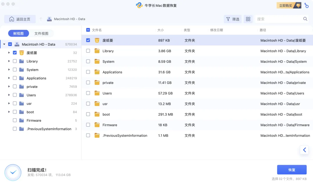 第3步:恢复Mac文件
