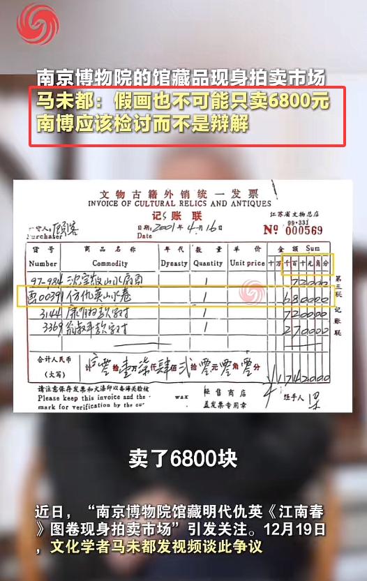 更令人咋舌的是一条完整的利益输送链条。徐湖平当时身兼江苏省文物总店法人,他将 “鉴定为赝品” 的真品,以极低的价格从南博划拨到文物总店,随后这些文物又悄然流入其儿子在上海创办的拍卖公司。最终,这些本属于国家的瑰宝,被以数百万、上千万的天价卖给海外收藏家,而整个过程中,购买人信息常常被标注为 “匿名”,痕迹被刻意抹去。当年那幅引发争议的《江南春》,便是以《仿仇英山水卷》的名义,仅以 6800 元的价格被 “处理”,其流转路径与郭礼典举报的套路完全吻合。