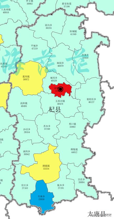 金城街道超过15万人,葛岗镇和圉镇镇超过5万人,竹林乡不足2.5万人。
