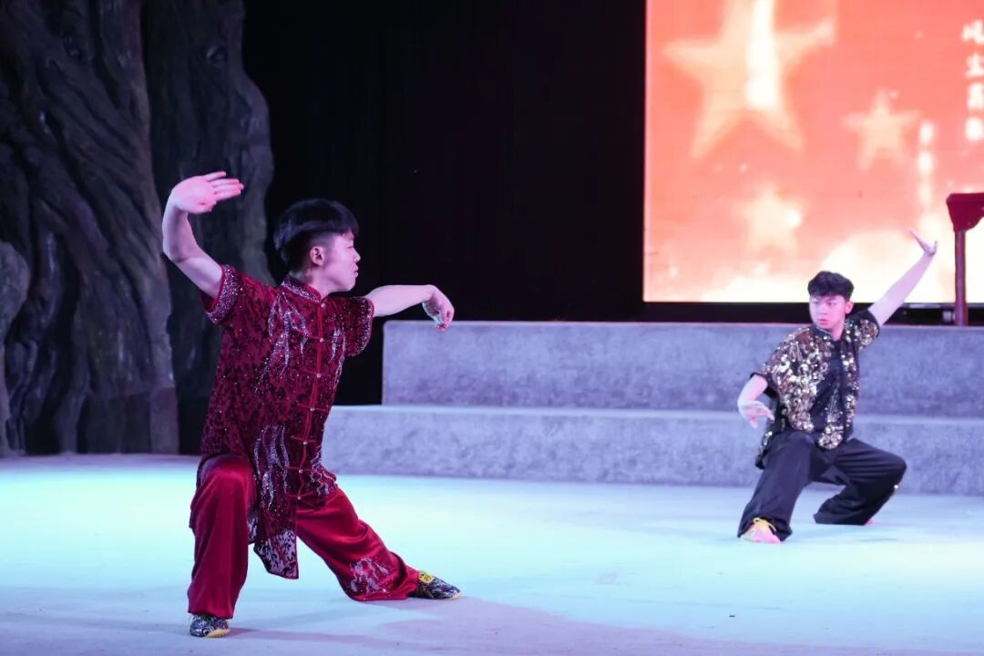 参观完校园,在展武堂,观看了鹅坡武校办学专题片和武术教学成果展示。伴随着铿锵有力的音乐,鹅坡学子们刚劲的拳法、利落的器械、整齐的队形,引得现场掌声阵阵、喝彩不断,也让王德庆先生与客人们共同见证了当代鹅坡学子的蓬勃朝气和传承中华武术的责任担当。