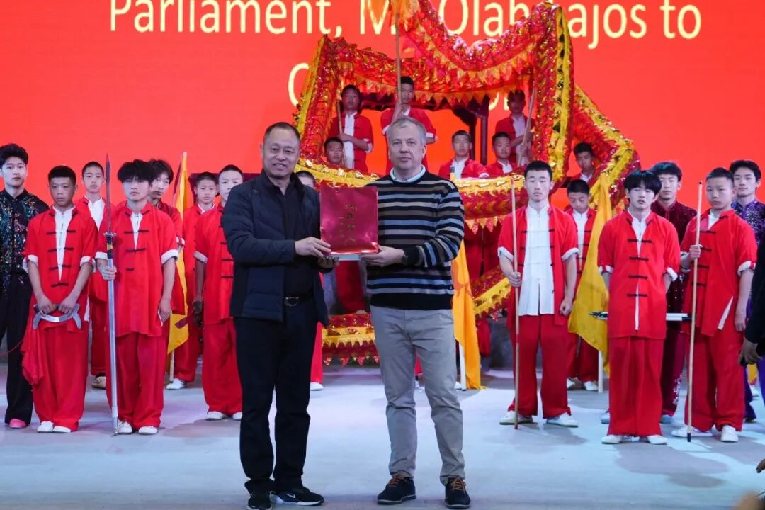 3月22日,匈牙利国会副主席欧拉·劳约什(Olah Lajos)、匈牙利国会外事局局长郭浩林(Kohari Lajos Akos)、匈牙利驻华使馆经济、贸易与投资促进处二秘肖格尔·卡塔琳(SogorKatalin)、中国匈牙利郑州国际合作与产业应用示范中心主任张亚等,在早年跟随创办人梁以全先生习武、禅武国际联盟(匈牙利)总会主席王德庆先生的引领下,莅临鹅坡武校参观考察。省市领导及鹅坡武校书记、执行校长常福晓,副校长周洪多,工会主席孟海鹏等陪同。