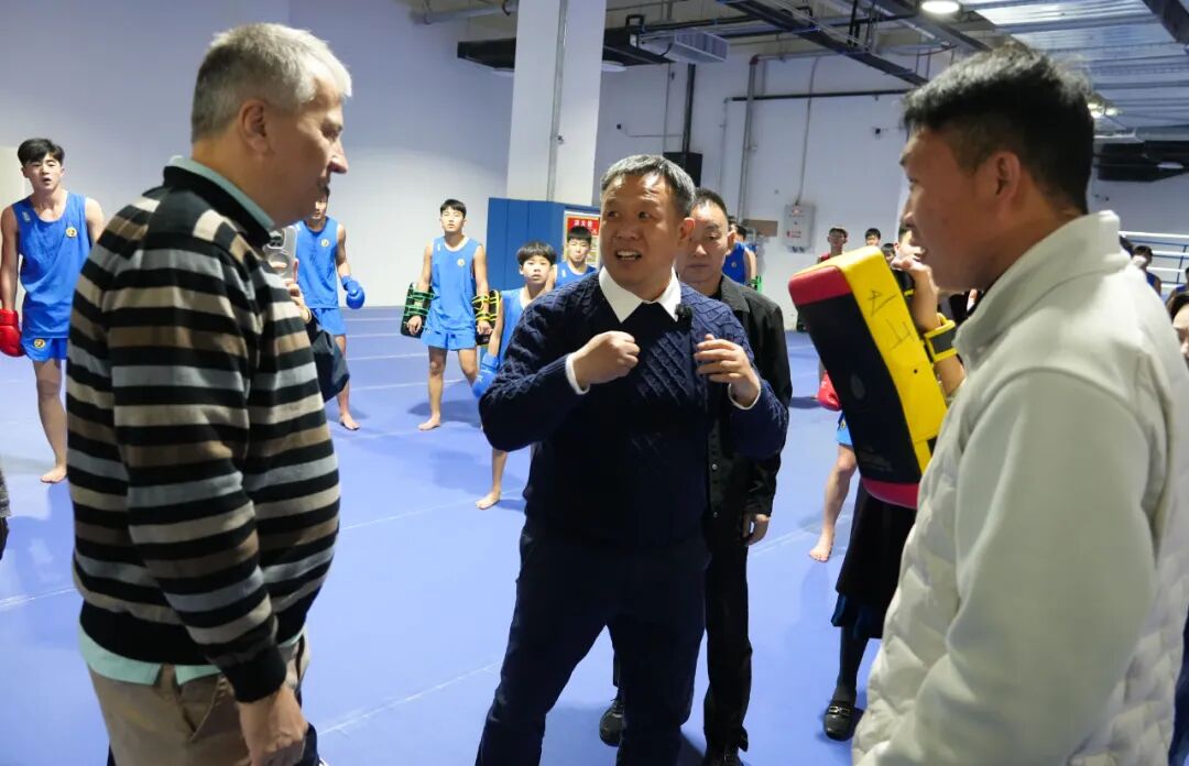 在训练馆内,王德庆先生为客人展示了武术动作,并邀请客人亲身参与体验,感受中华武术的独特魅力,把中华武术精神传递给国际友人。