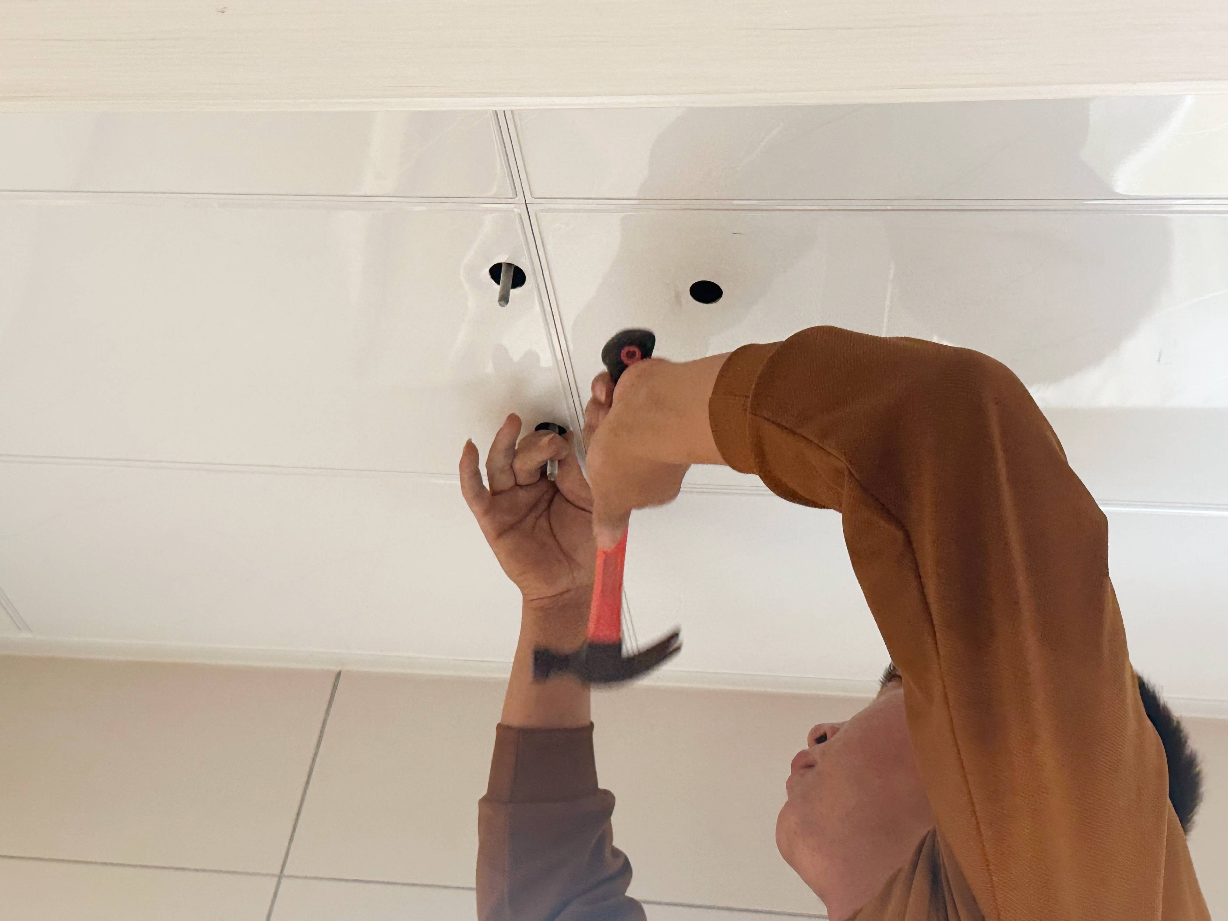 确定好打眼位置后,安装师傅就开始打眼和安装膨胀螺栓了,安装师傅真的很专业,三下五除二就轻松搞定了。