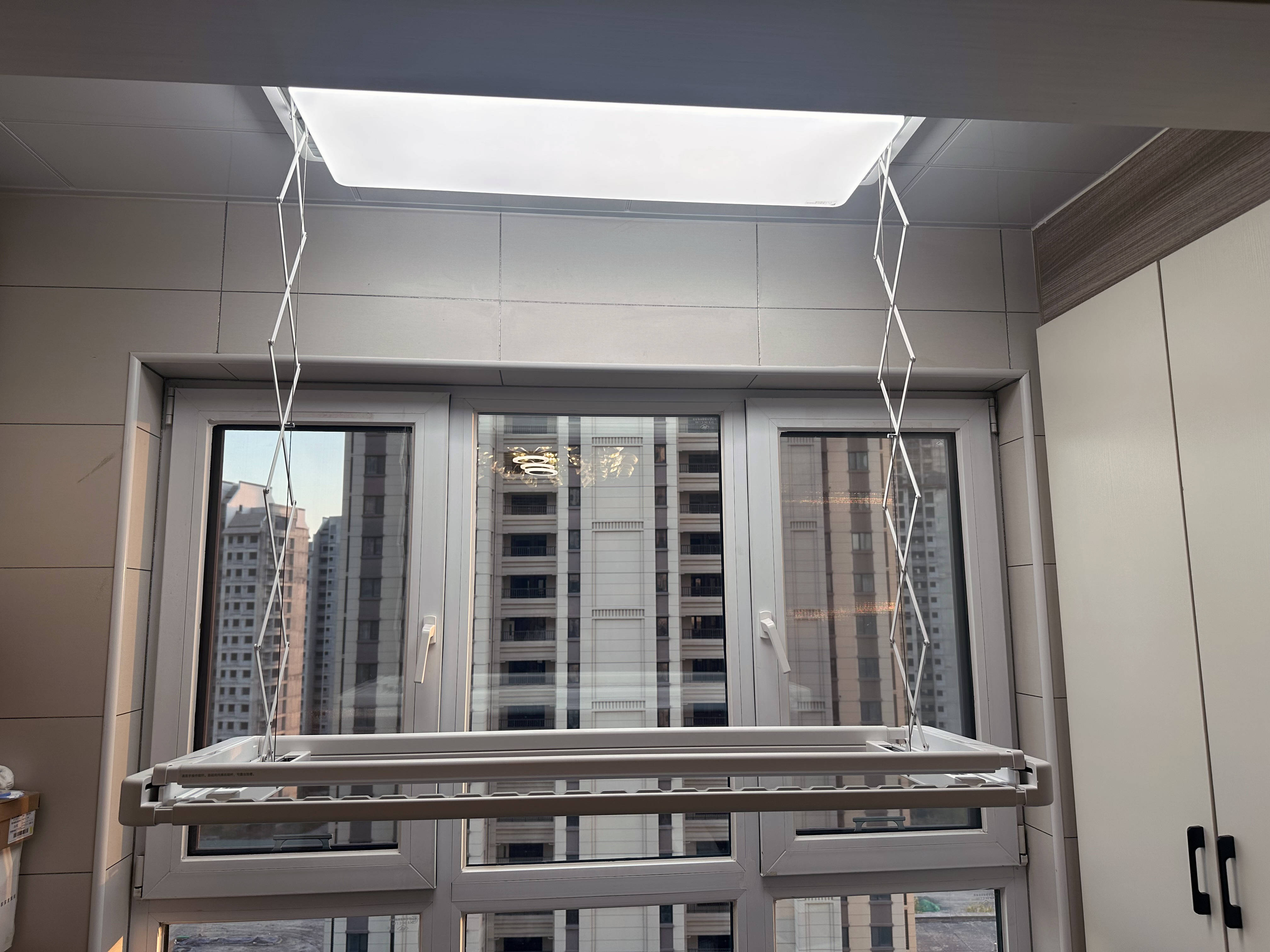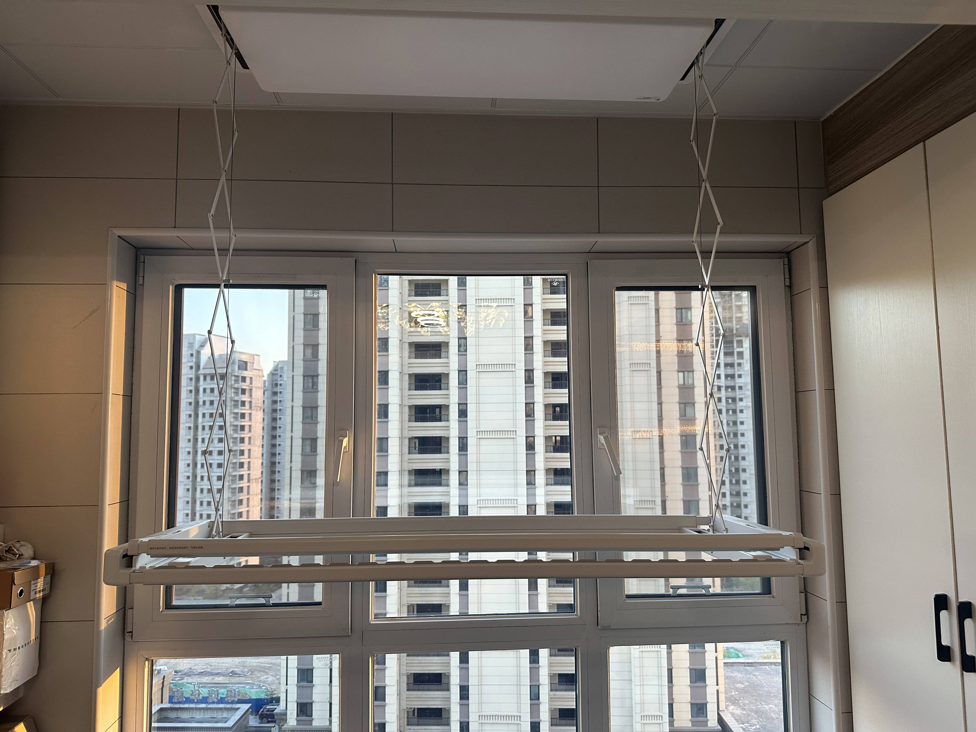 安装师傅把晾衣机整体安装到膨胀螺栓上即可,前前后后几分钟就搞定了,为安装师傅点个大大的赞。