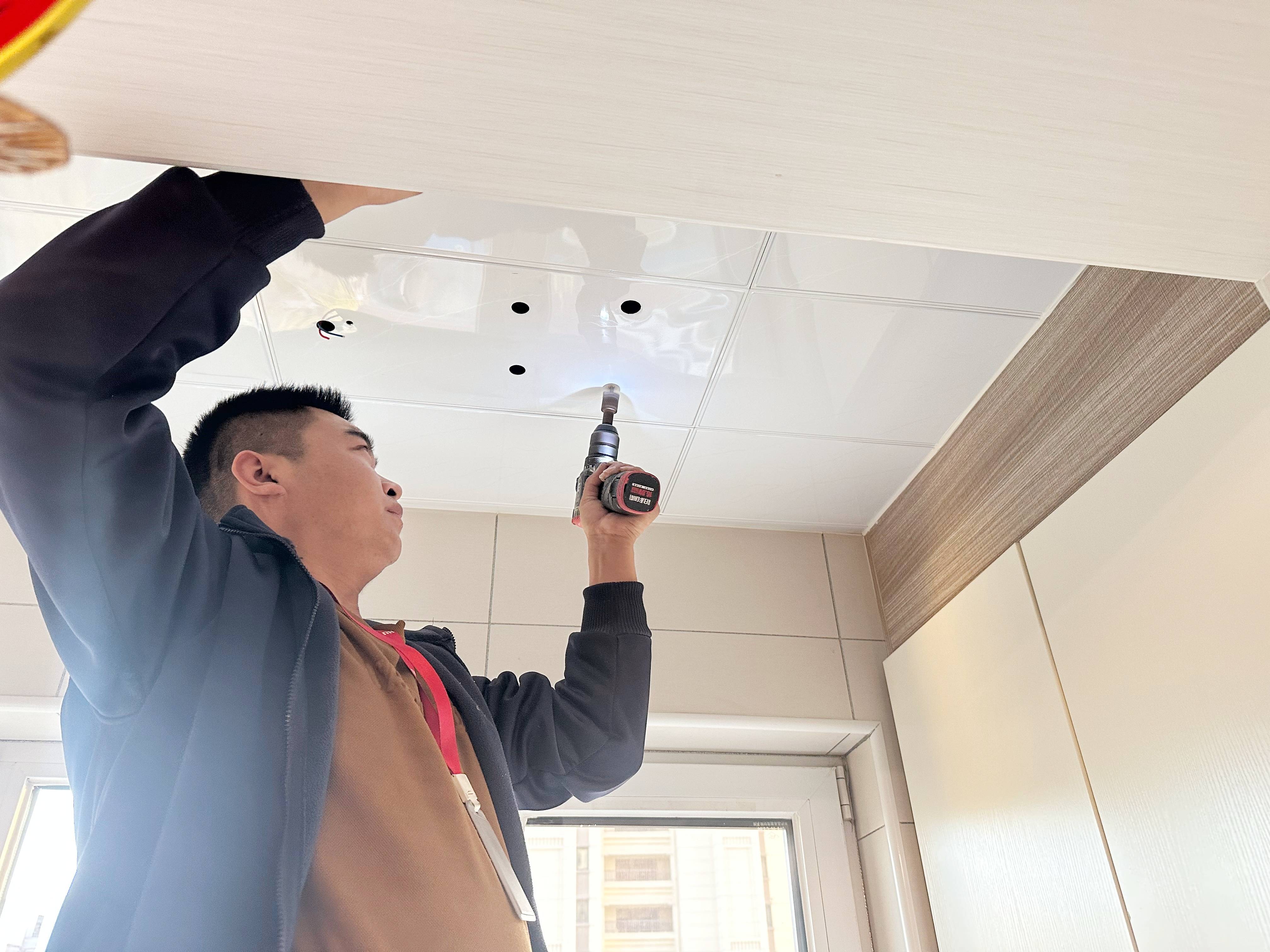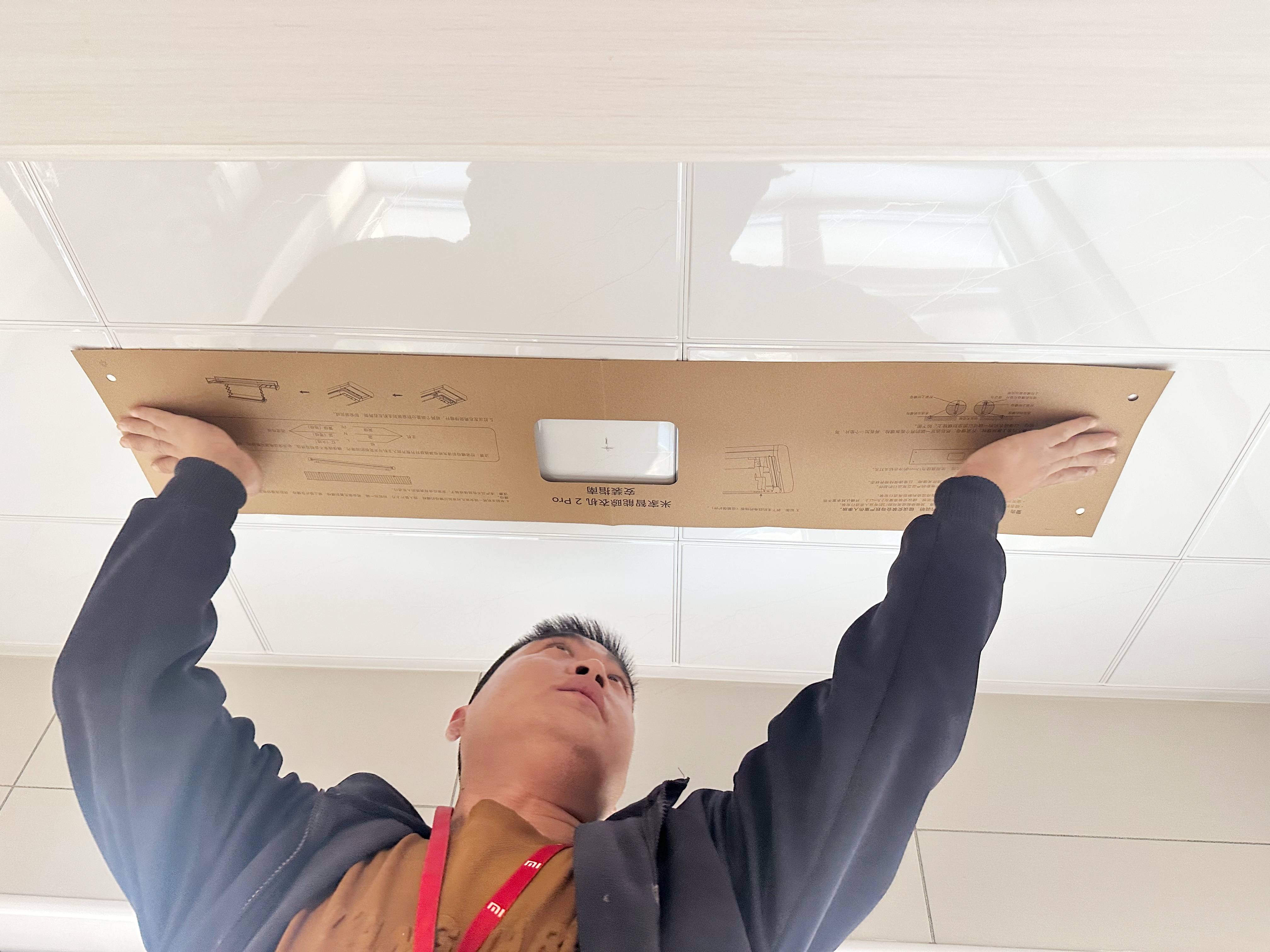 晾衣机也很贴心,产品自带了安装点位卡片,安装师傅可以直接用卡片来定位打眼的点位。