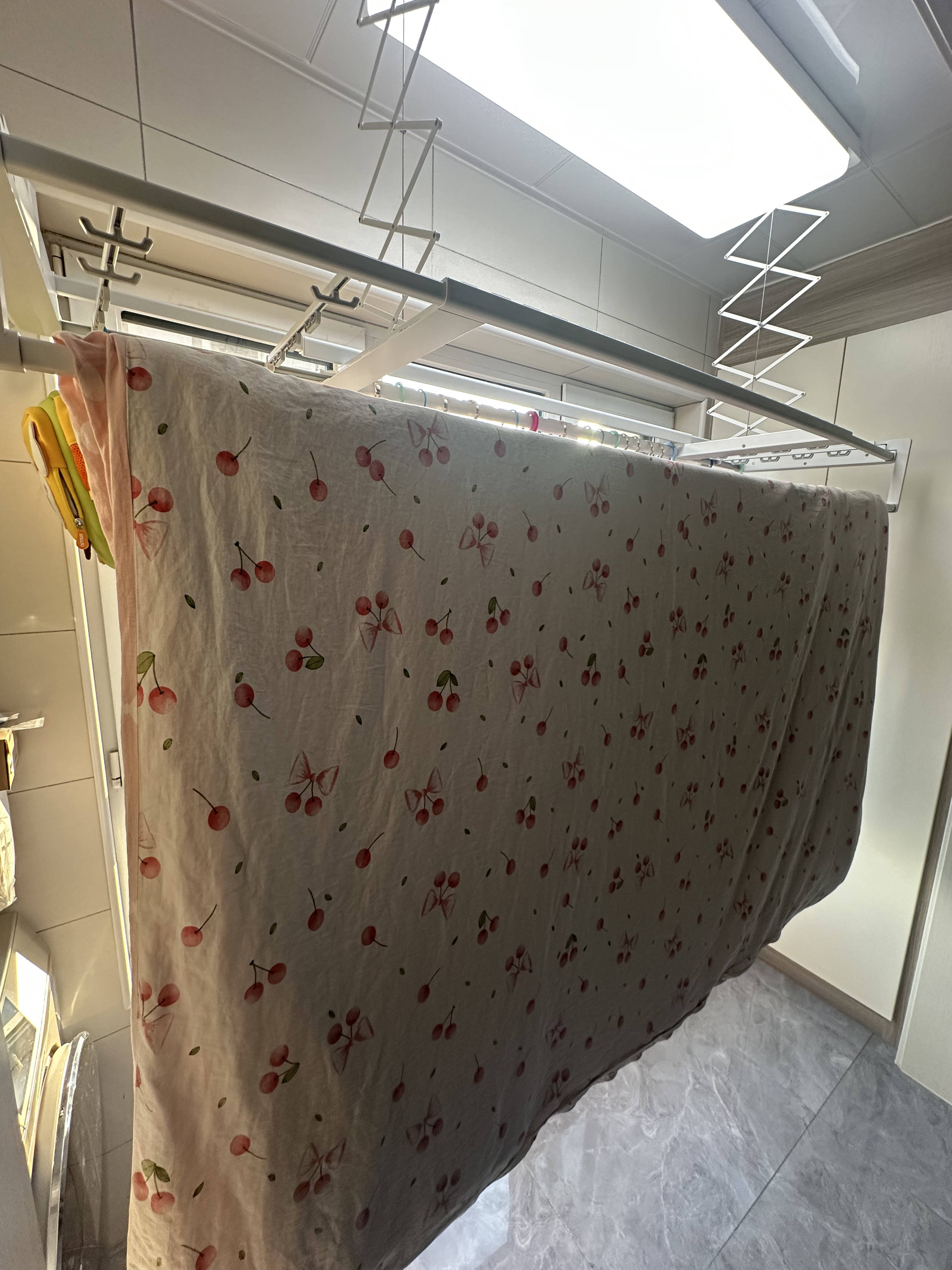 同时晾衣机采用了开放式晾杆设计,同时采用了伸缩细杆的设计,从而增大了晾衣的空间,在家也可以轻松晾晒被子。