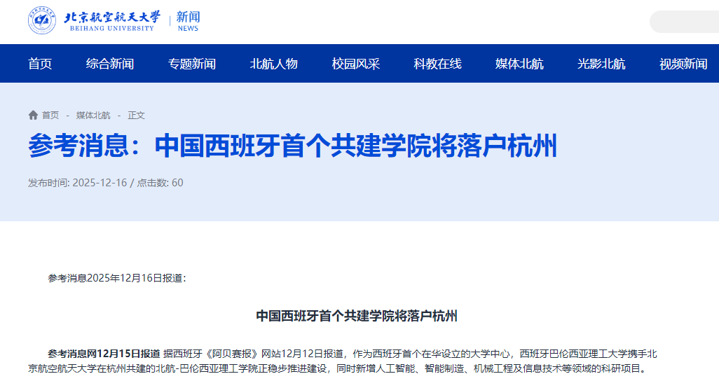 余杭即将迎来一所世界级高等学府!近日,西班牙主流媒体发布消息称,西班牙顶尖理工类高校——瓦伦西亚理工大学与北京航空航天大学正式签署重要合作协议。该校此前已表示,计划于2026-27学年在杭州校区启动教学。