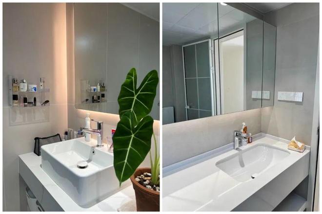 所以,我更倾向给浴室柜做一体盆,虽然价格有点贵,但由于是无缝一体结构,所以既不会卡垢,也不会发霉,更没有卫生死角。