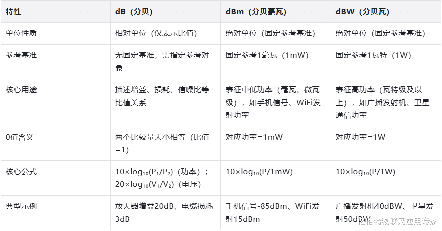 总结来说,区分这三个单位的关键在于“是否有固定参考基准”:无基准的是dB,用于对比;有基准的是dBm和dBW,用于表征具体功率。记住“dBm参考1mW(小功率)、dBW参考1W(大功率)”,再掌握“dBm = dBW + 30”的换算关系,就能在实际应用中准确理解和使用这三个单位了。