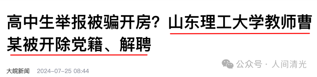 目前,山东理工大学已经发布通报,解聘曹某并开除党籍,这基本意味着女高中生的举报完全属实。