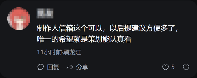 也有人非常认可制作人信箱:“制作人信箱这个可以,以后提建议方便多了,唯一的希望就是策划能认真看。”
