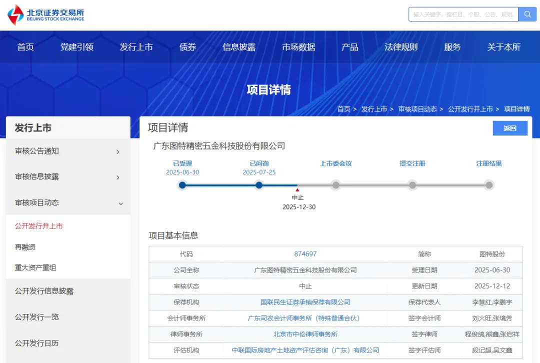 图特股份的上市之路可谓一波三折。其曾于2023年6月申报深主板上市,但在2024年9月主动撤回申请;随后转道北交所,于2025年6月获得受理;此次中止前,曾因财务报告到期于2025年9月中止审核,后于10月30日完成财务资料更新并恢复审核。