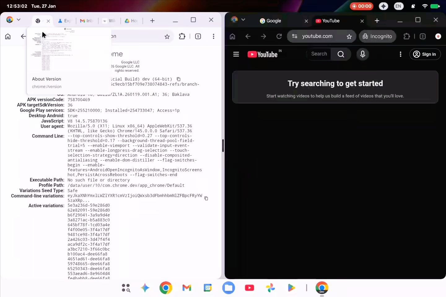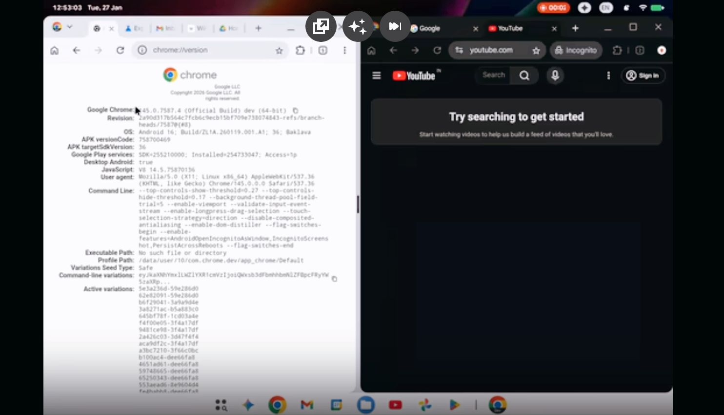 这次演示用的设备是一台搭载英特尔12代酷睿处理器的惠普Chromebook,但系统构建版本号却明确显示基于Android 16。