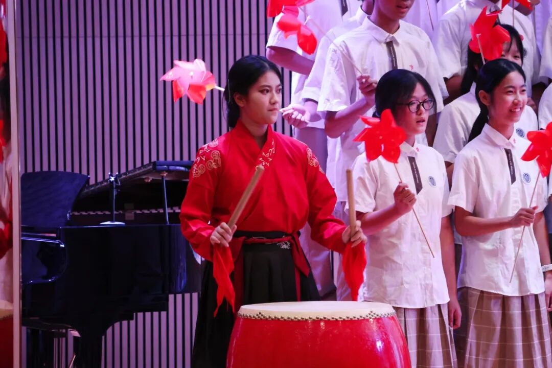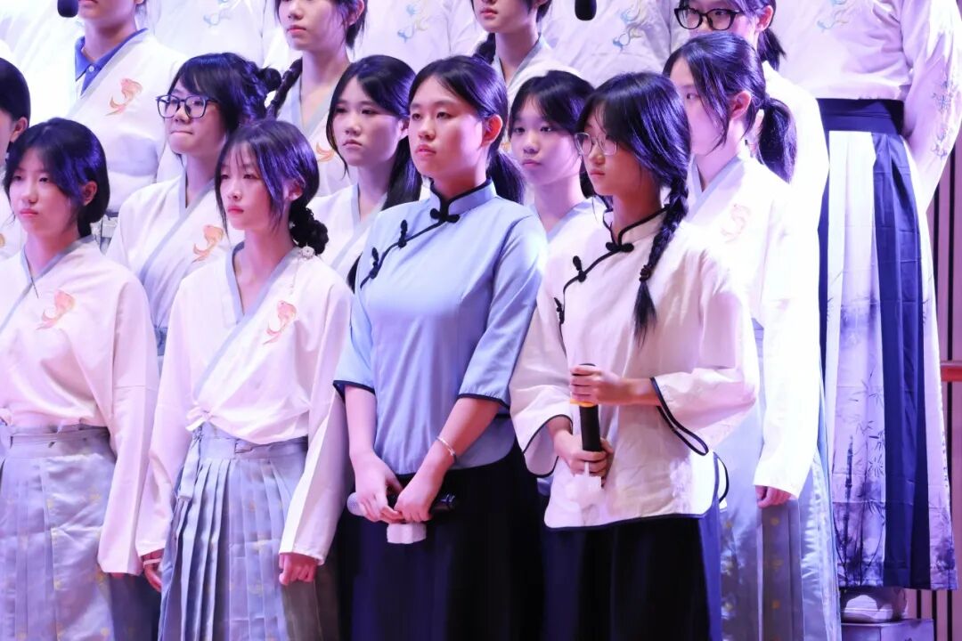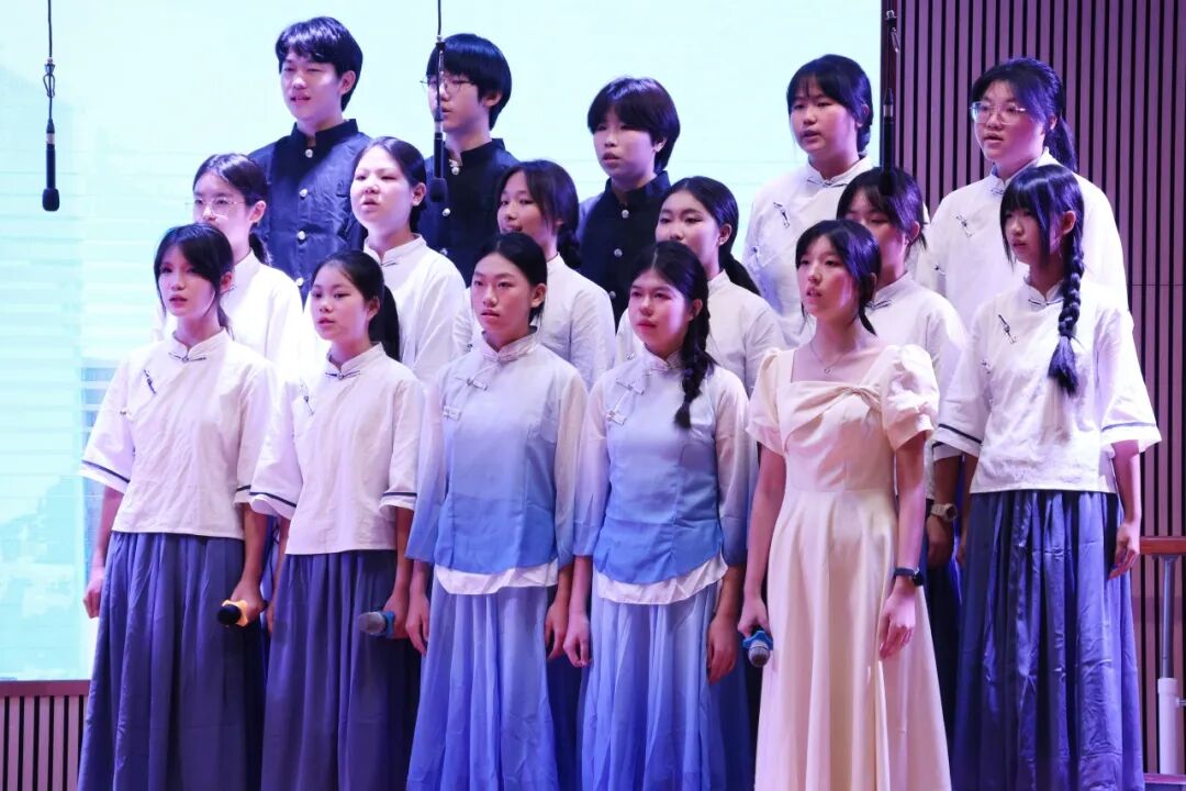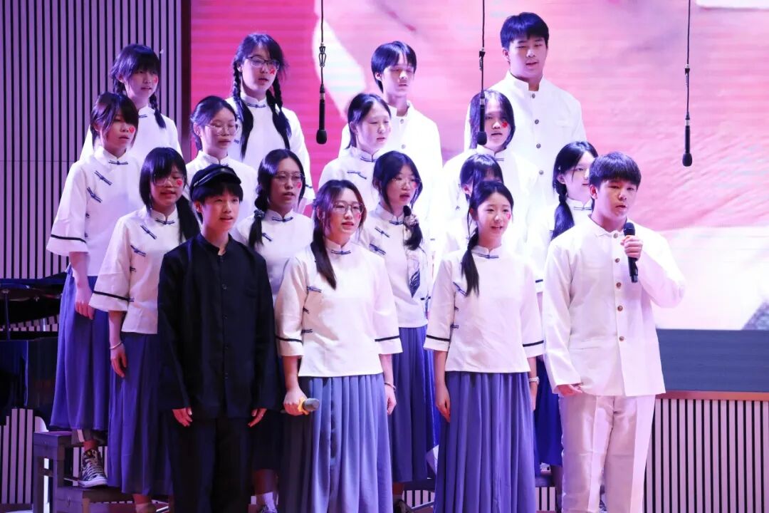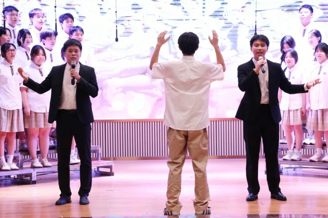 在学生演唱时,邓越老师会默默地在台下指挥和鼓励,她细微的动作被台上的学生看在眼里,我们会感受到,学生们的歌声变得更加嘹亮,眼神更加坚定。