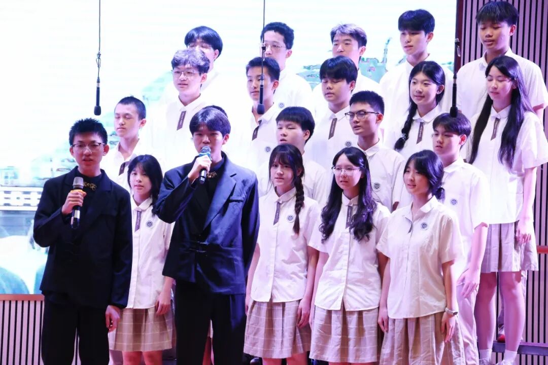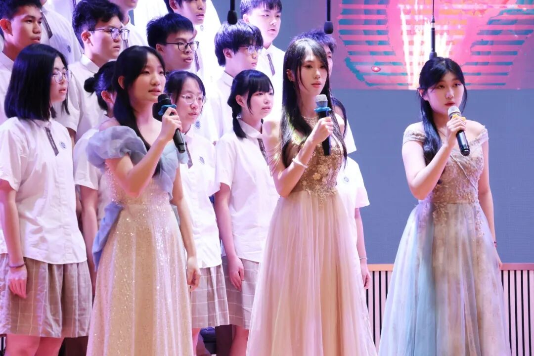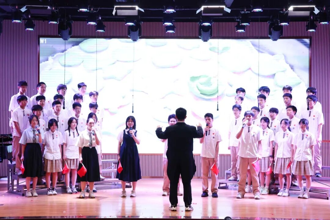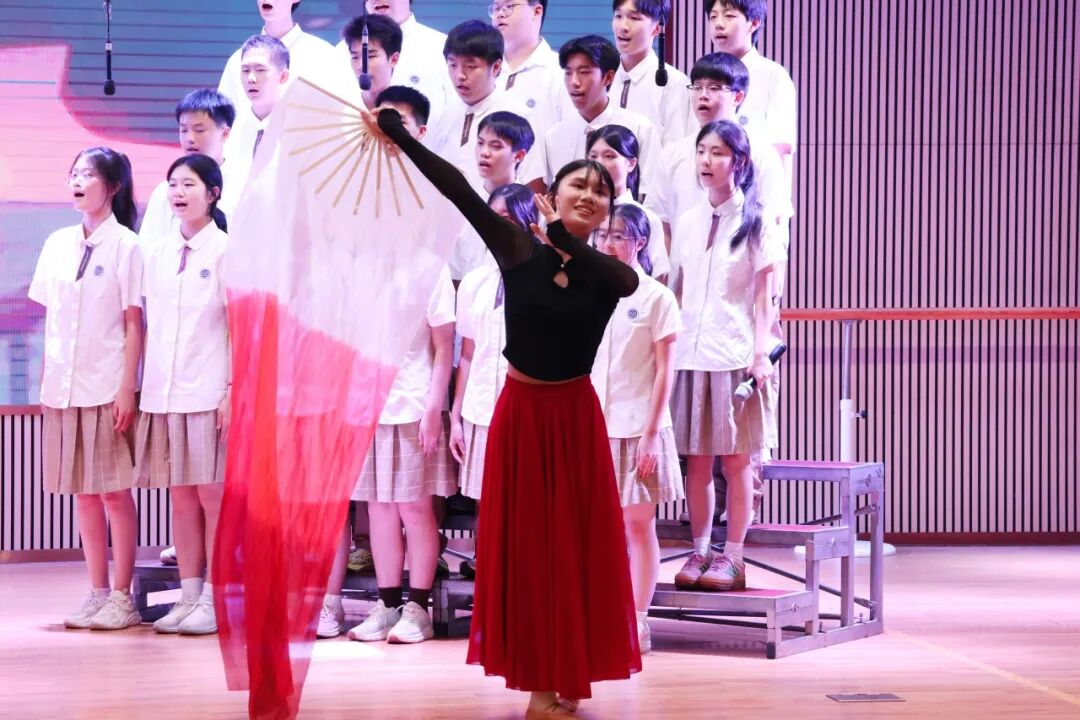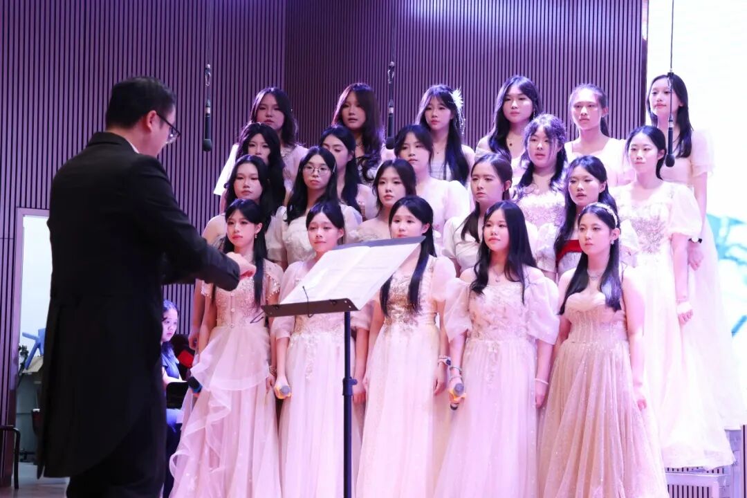 在学生演唱时,邓越老师会默默地在台下指挥和鼓励,她细微的动作被台上的学生看在眼里,我们会感受到,学生们的歌声变得更加嘹亮,眼神更加坚定。