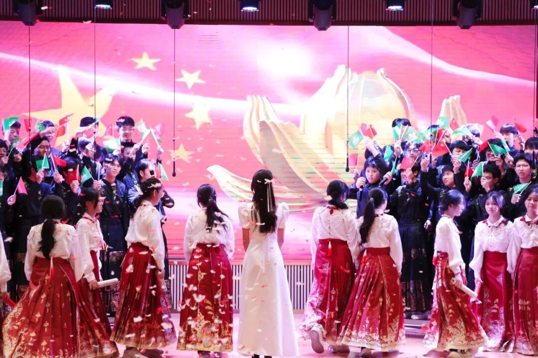 更有班级巧妙运用红色绸缎、五星道具,在《歌唱祖国》的旋律中编织出令人惊叹的视觉画卷。