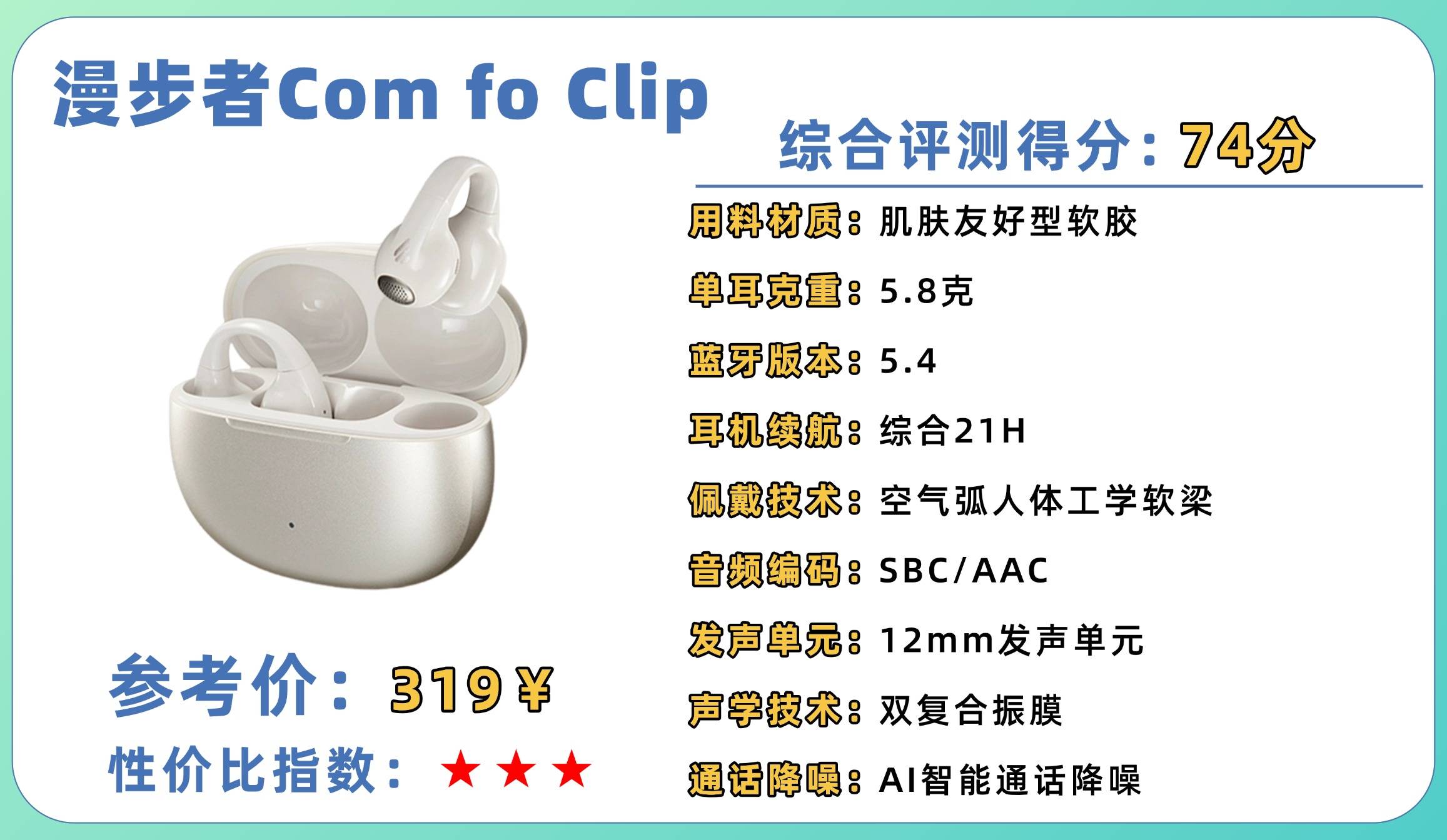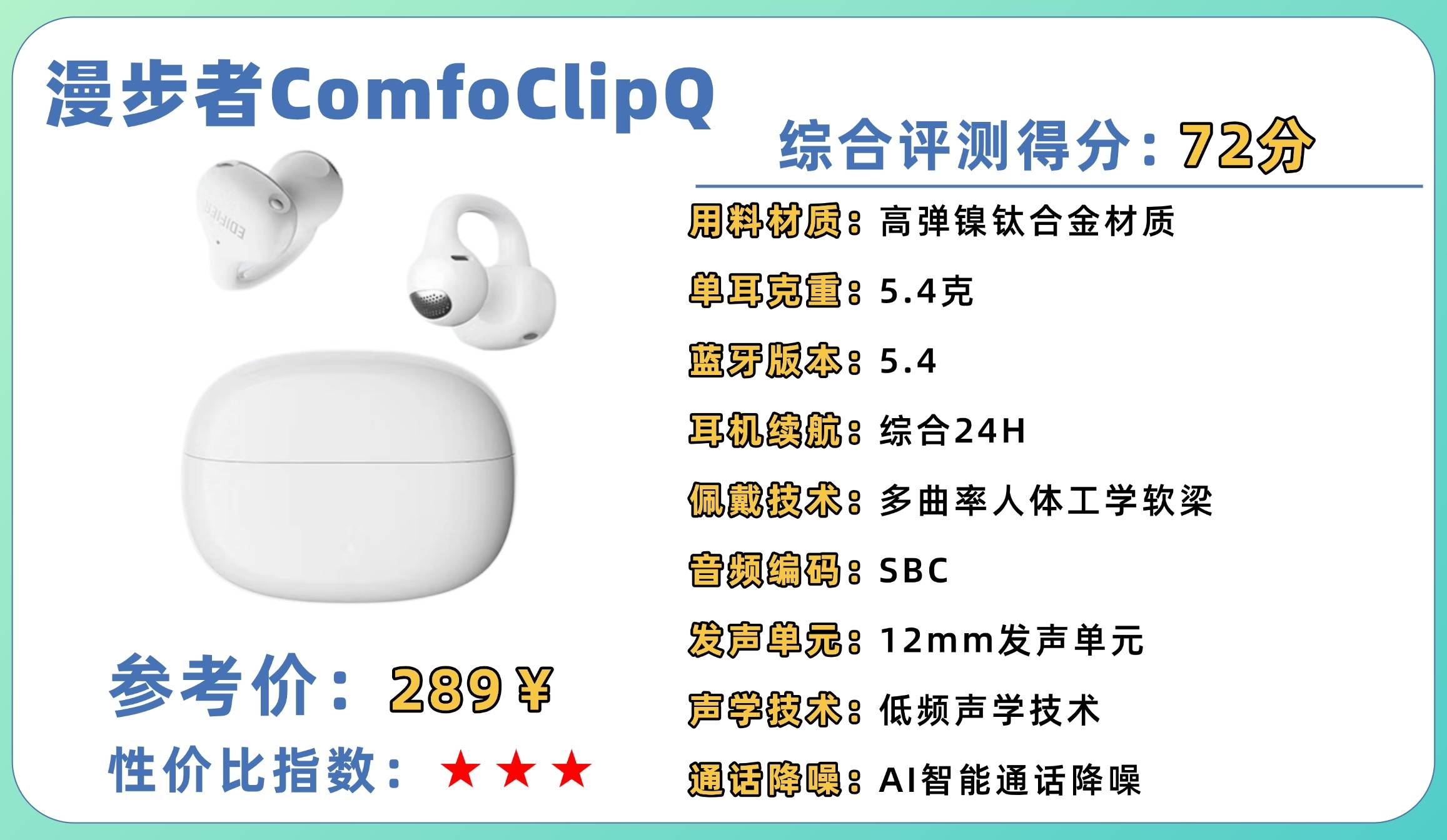 10、漫 步 者Com fo Clip耳夹开放式耳机
