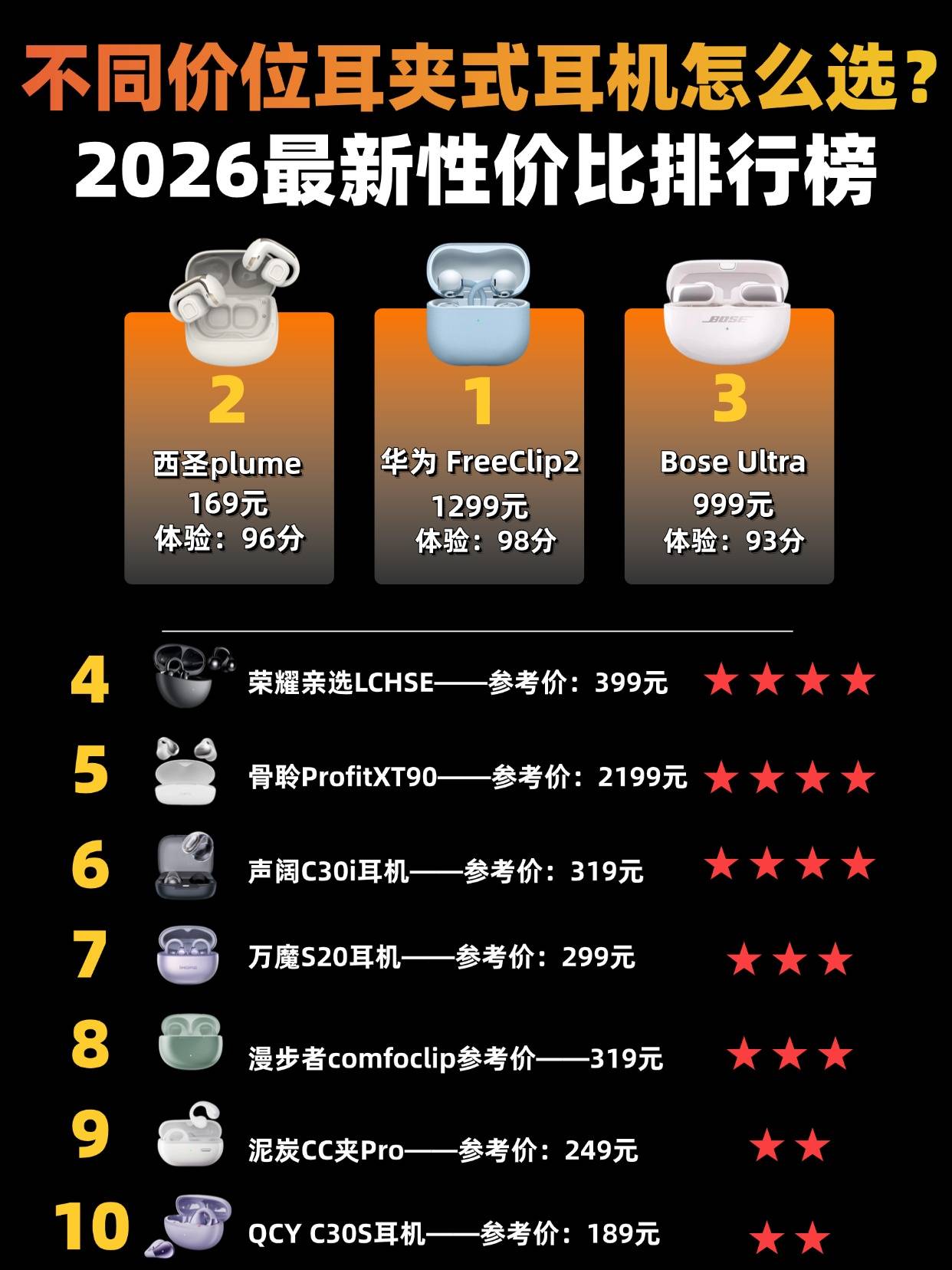 为了帮助大家在选购耳夹式耳机时少踩坑,我精心筛选了市面上十款表现优异的产品,希望通过这份详细的对比分析,能帮助你根据个人需求,轻松找到最适合自己的那一款。