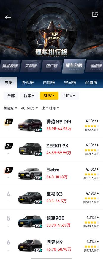 说是反转,其实目前BBA40万以上市场也打不过了,极氪9X一出,40万—60万的SUV根本没几个能打了,连BBA引以为傲的机械素质都强得多,更别说智能化之类的了,口碑榜就是最好的证明