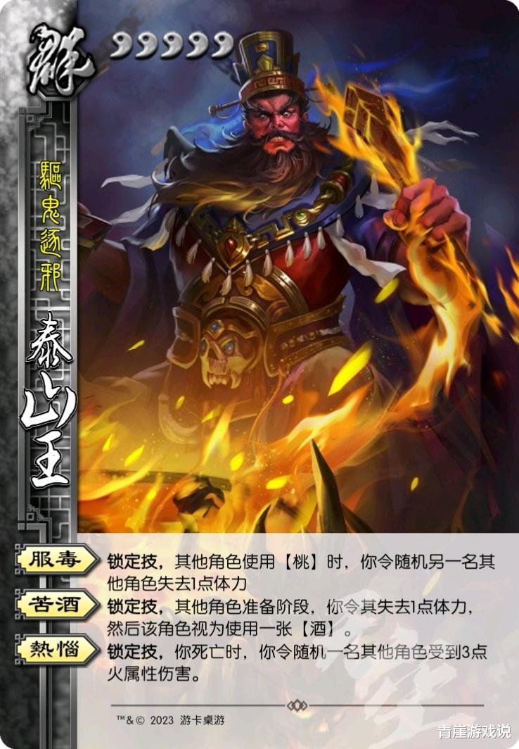 第七位阎王是泰山王,【服毒】有人回血有人就得掉血!【苦酒】和【鸩毒】类似,只有造成伤害改成了失去体力。【热恼】是死亡时,造成三点火焰伤害。泰山王非常可怕,全部技能都和伤害沾边,玩家可以较为轻松地打败他,但是三点伤害谁来承受?