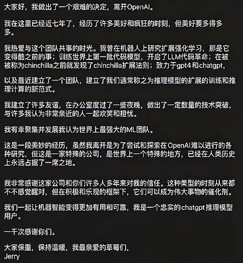 6. OpenAI“推理之父”离职,商业化进程或挤压前沿探索空间OpenAI研究副总裁Jerry Tworek近日宣布离职,其理由为“探索在OpenAI内部难以开展的研究类型”。作为公司的资深研究员,Tworek曾深度参与GPT-4等关键模型的研发,被誉为“推理之父”。他的离职被外界视为一个信号,表明这家明星AI公司在加速产品商业化与变现的过程中,可能正在压缩那些纯粹、探索性且短期无商业回报的前沿科研项目的生存空间。