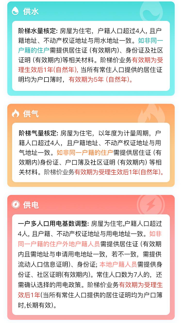 如果你家常住人口在5人及以上,就可以申请“一户多人口”认证,通过之后,水电气都能享受更优惠的阶梯政策。
